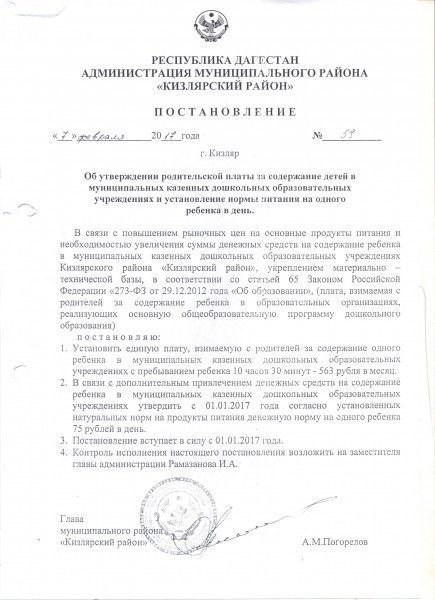 Постановление о порядке взимания родительской платы